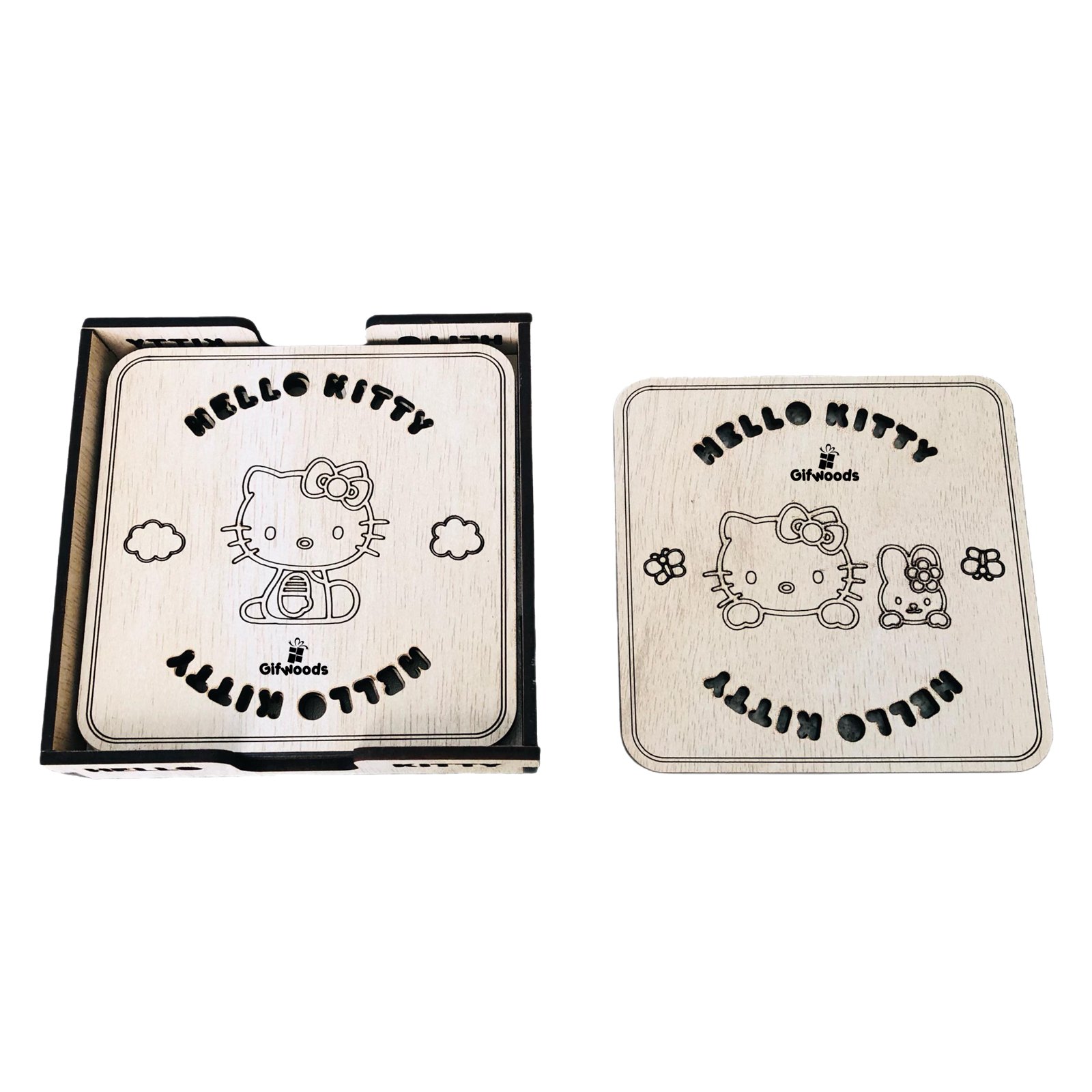Add a dash of sweetness to your tea time with this charming Hello Kitty square wooden coaster. Crafted with precision and featuring cute cloud engravings, it keeps your surfaces safe while elevating your decor!