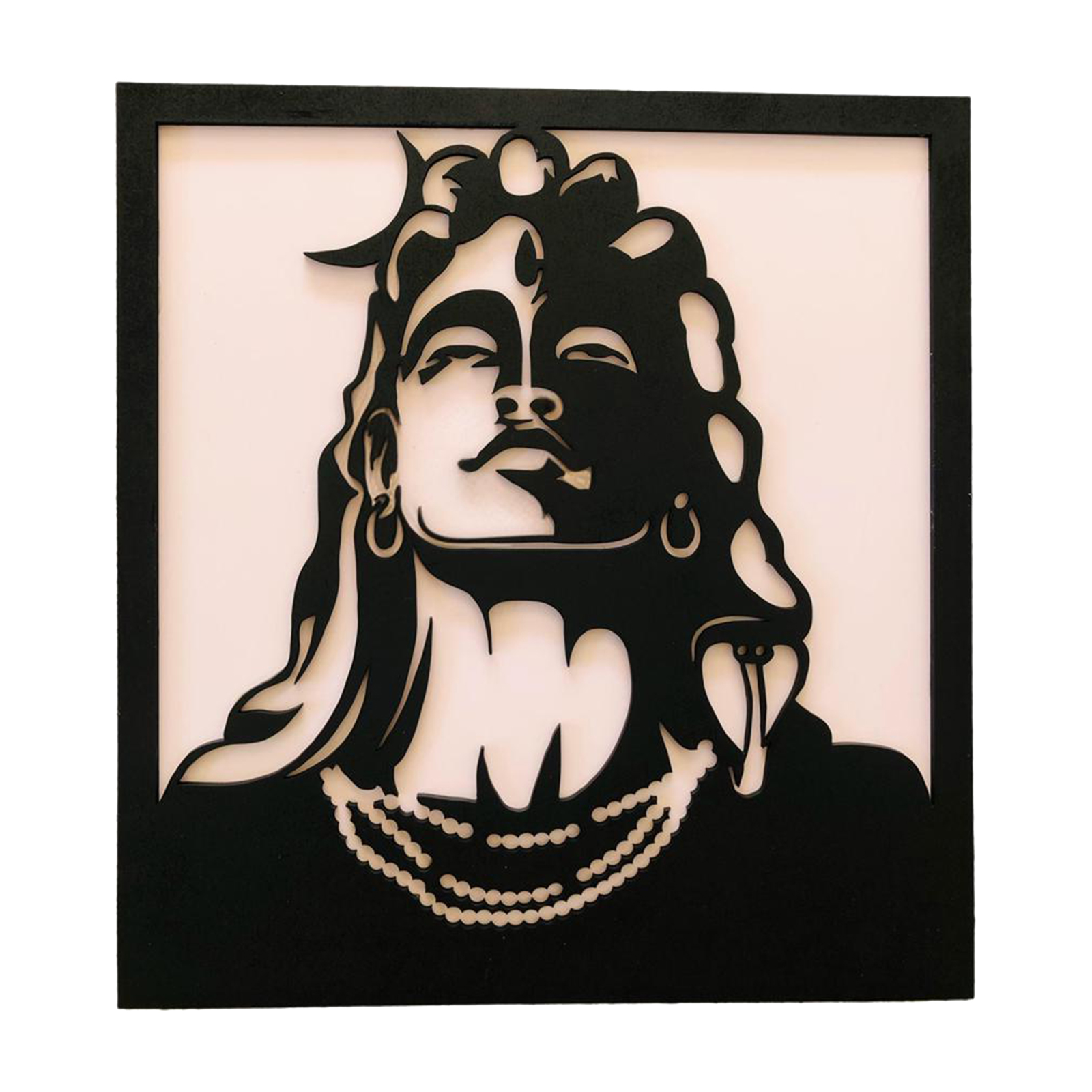 Crafted using high-quality wood and precision laser cutting, the design highlights iconic Shiva elements like the third eye, flowing hair (Jata), and calm expression – representing wisdom and meditation.